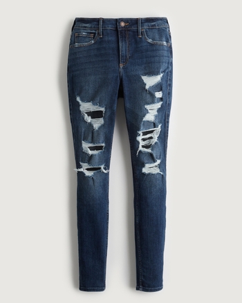 Women S Curvy Mid Rise Ripped Dark Wash Super Skinny Jeans Women S Bottoms Hollisterco Com